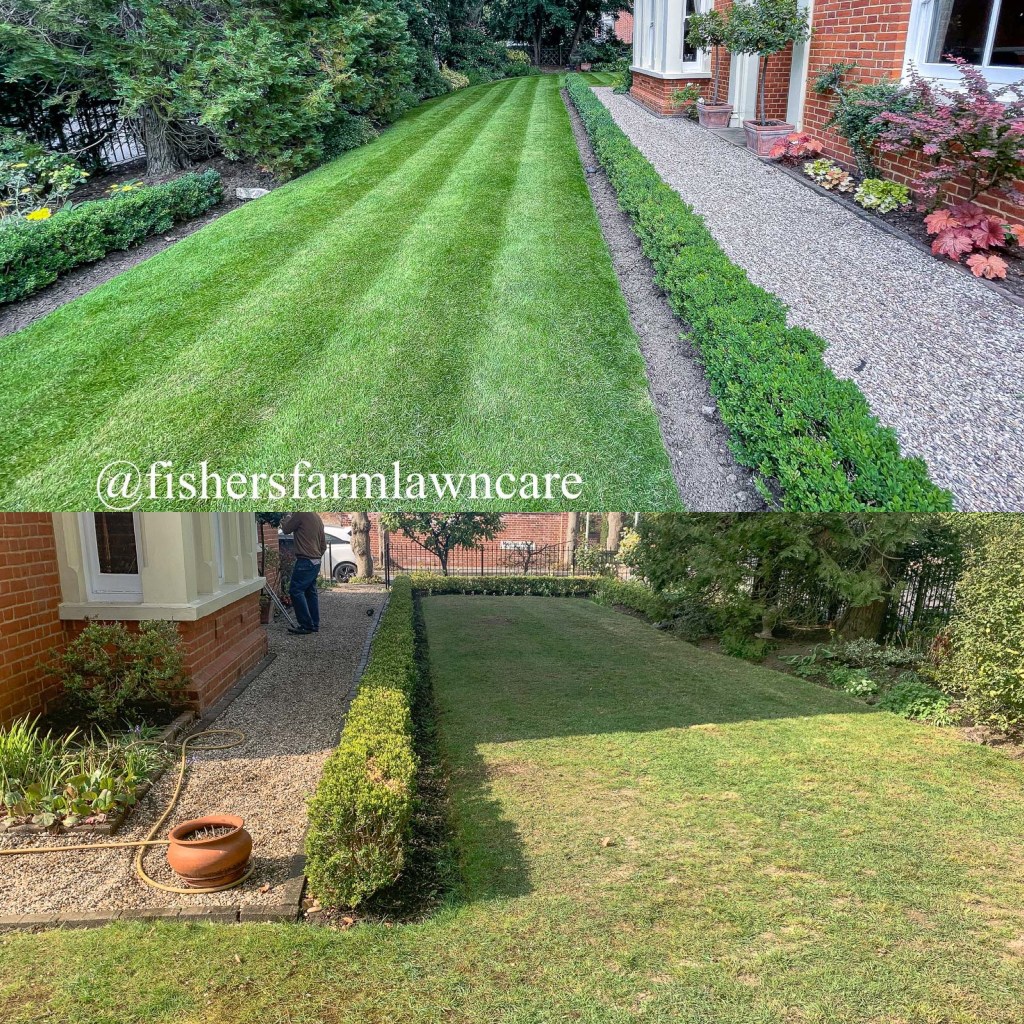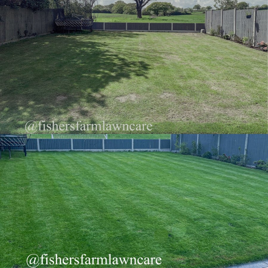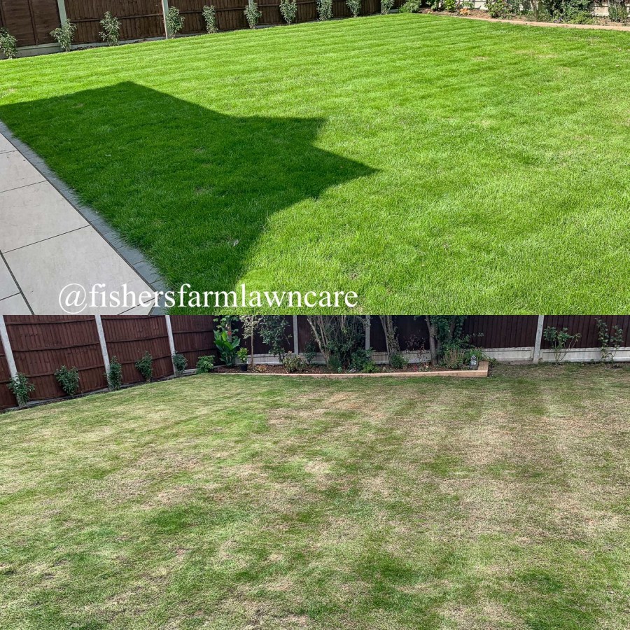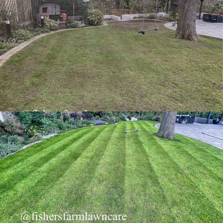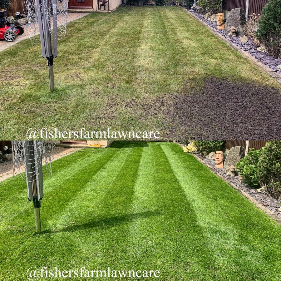These photos show the improvements in an existing lawn after scarifying, over-seeding and fertilising. They were taken on our standard progress visit two to three weeks after work was completed. All of these lawns continue to improve after these photos were taken.