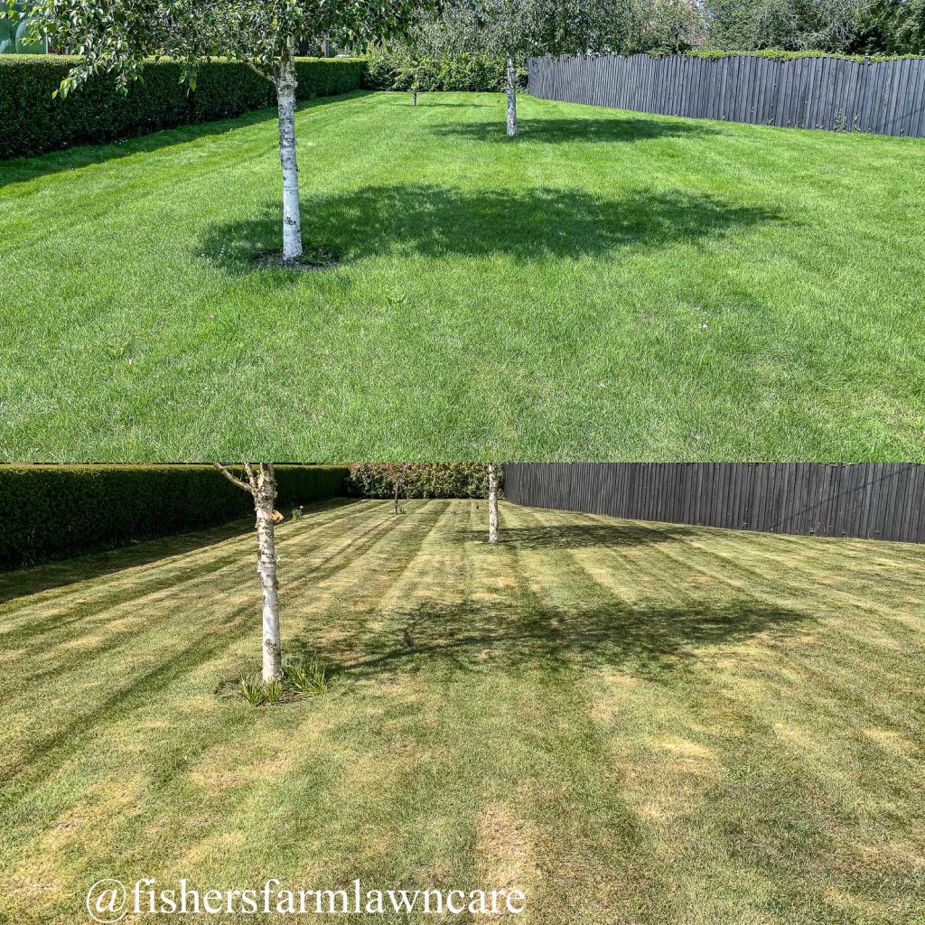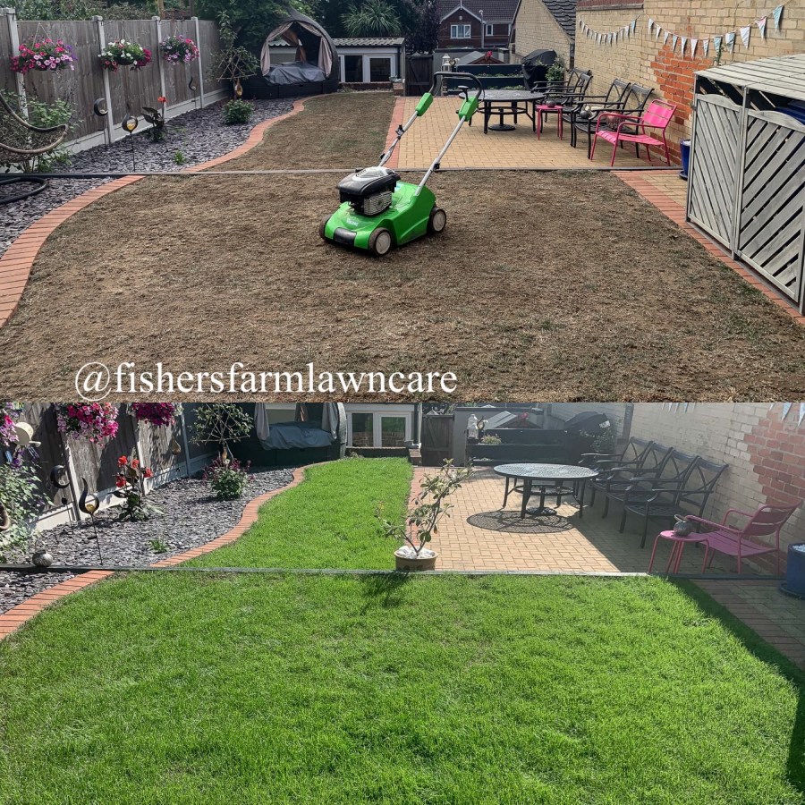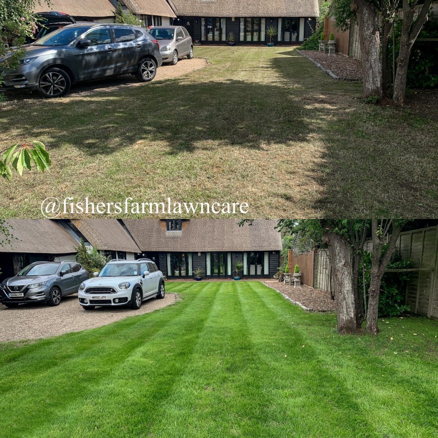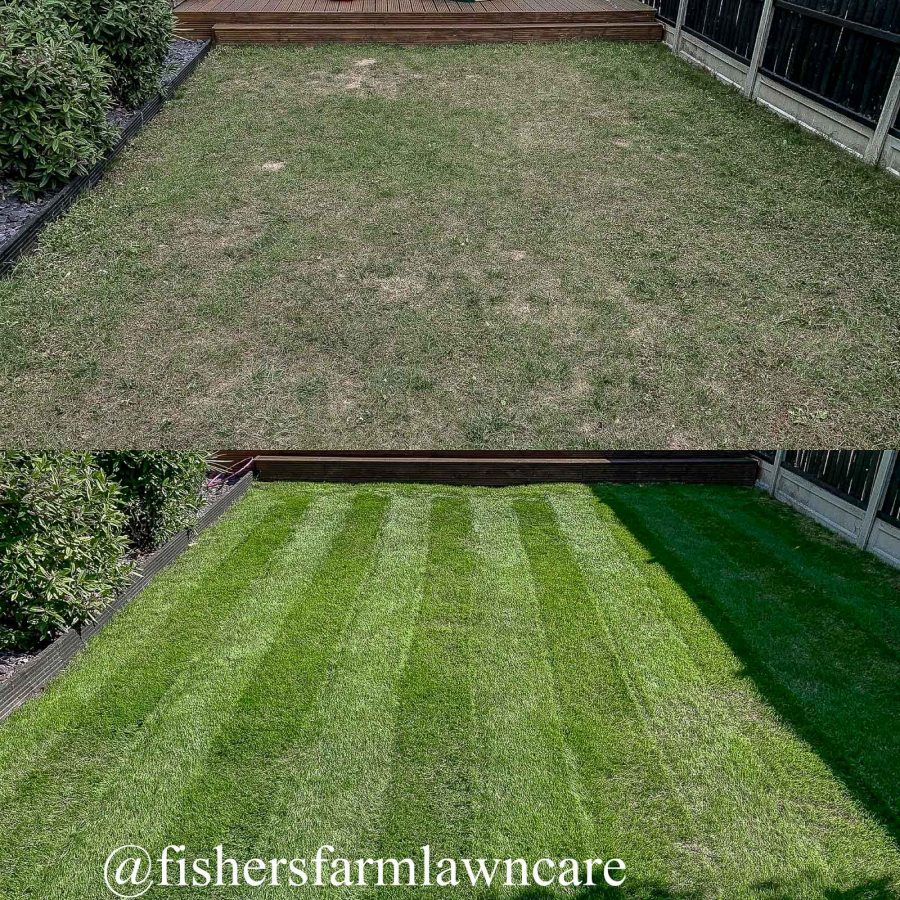 These photos show the improvements in an existing lawn after scarifying, over-seeding and fertilising. They were taken on our standard progress visit two to three weeks after work was completed. All of these lawns continue to improve after these photos were taken.