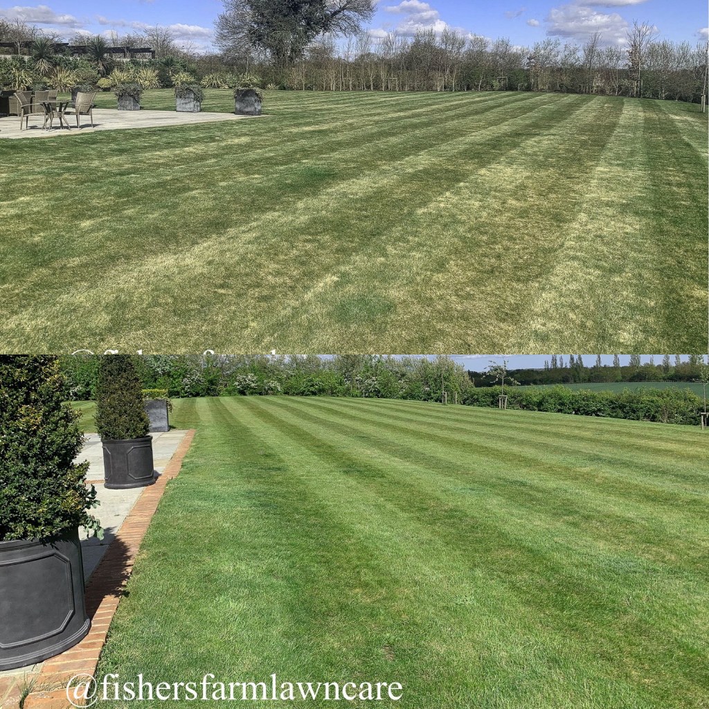 There are a huge range of fertilisers suitable for use on a lawn, depending on the problem, and or goal. Here at Fishers Farm Lawncare we hold stock of a large range of all types of lawn fertiliser allowing the correct product to be used at the correct time. Options include granular, liquid, organic, certified pet and child safe to name but a few.