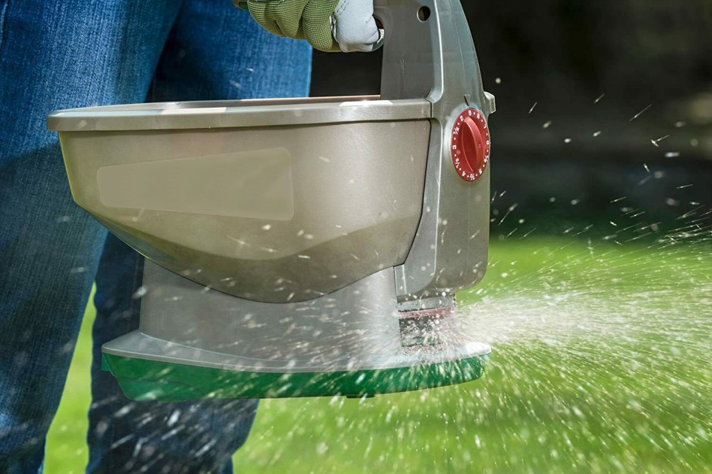 Granular fertiliser is available in various granule sizes from mini to maxi. Lawn fertiliser spreaders are usually push-along and deliver the fertiliser using a hopper, or for smaller areas, handheld fertiliser spreaders are used.